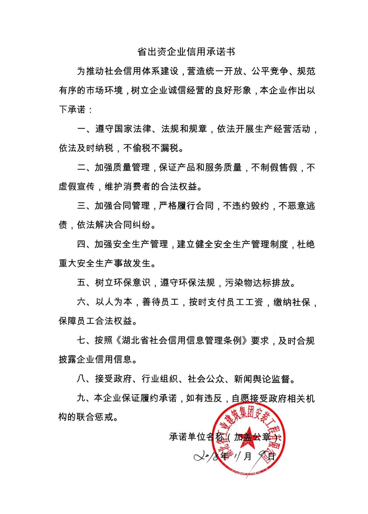 ? 企業(yè)簡(jiǎn)介 ? ? 管理團(tuán)隊(duì) ? ? 組織機(jī)構(gòu) ? ? 企業(yè)方針 ? ? 信用承諾 ? 首頁(yè) > 企業(yè)概況 > 信用承諾 信 用 承 諾