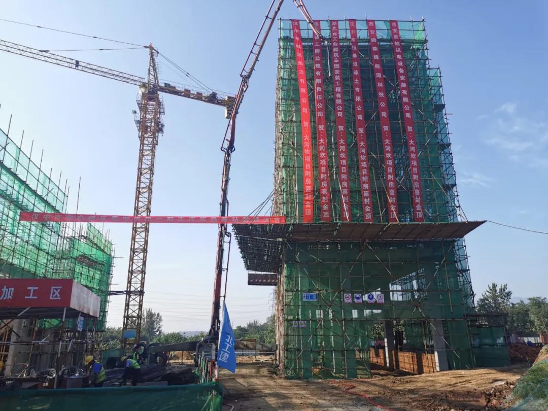 大河坎熱源站鍋爐附房高度29米,面積1800平方米,總體建筑結(jié)構(gòu)分為五層,平均每層高度為6米,最大跨度12米,是本工程中最高的單體建筑。自7月23日開工以來,項(xiàng)目部面對工期緊、任務(wù)重、標(biāo)準(zhǔn)高的實(shí)際情況,整合優(yōu)勢資源,全體員工夜以繼日,戰(zhàn)高溫、搶雨季,用汗水和心血澆筑工程,以4天一層的速度,比原計(jì)劃提前兩天完成結(jié)構(gòu)封頂。