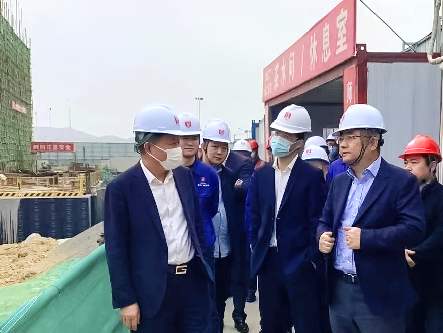 在施工現(xiàn)場,劉俊剛一行認真聽取項目規(guī)劃、安全管理、技術亮點等情況介紹,詳細了解項目進展情況及存在的問題。劉俊剛叮囑項目施工負責人要常態(tài)化做好疫情防控,特別要把好工程質(zhì)量關、安全關,確保項目早日投用、發(fā)揮效益,為企業(yè)改革發(fā)展匯聚新動能。