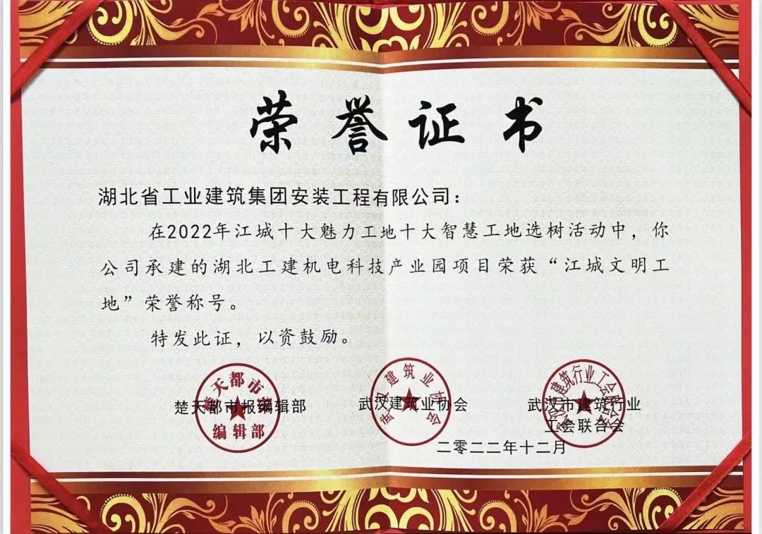 湖北工建機電科技產(chǎn)業(yè)園項目榮獲武漢市安全文明示范項目和湖北省安全文明示范項目