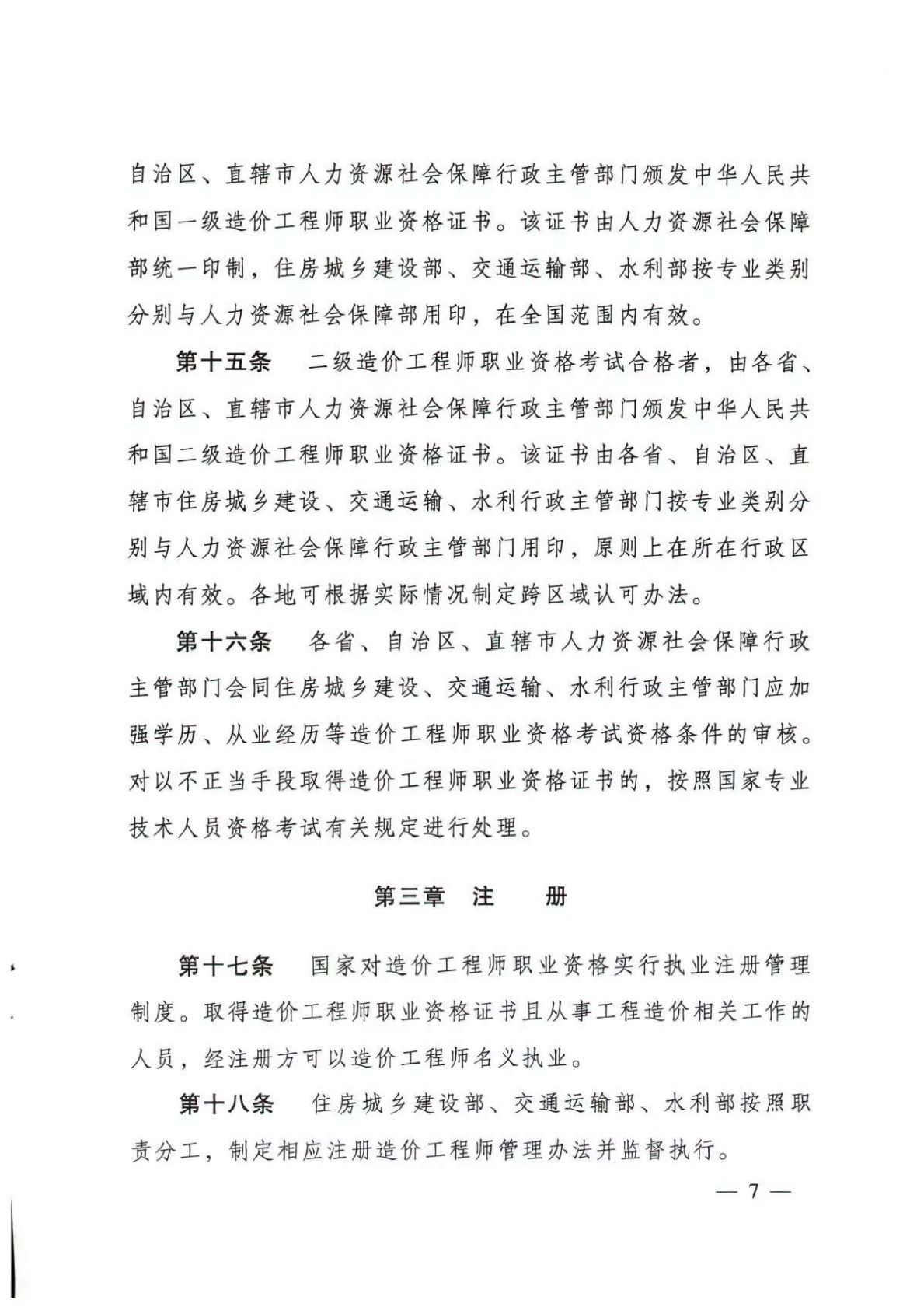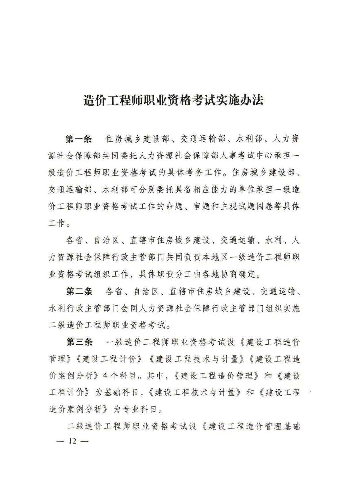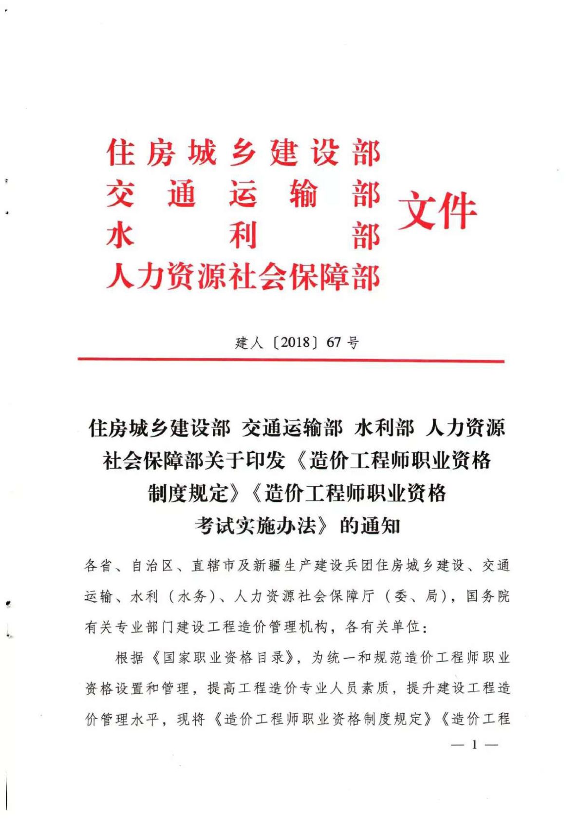 住房城鄉(xiāng)建部 交通運輸部 水利部 人力資源社會保障部關(guān)于印發(fā)《造價工程師職業(yè)資格制度規(guī)定》《造價工程師職業(yè)資格考試實施辦法》的通知